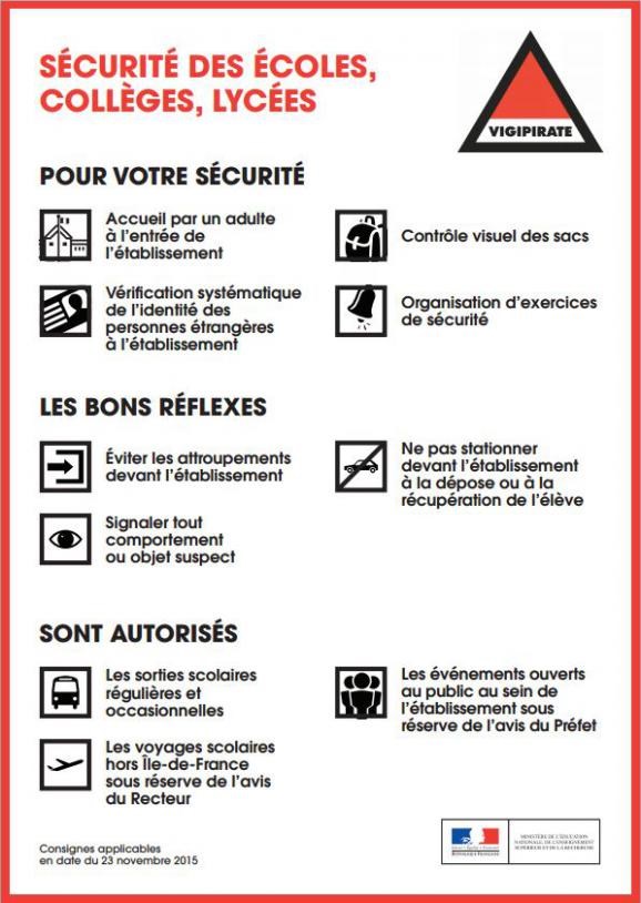 Compte-tenu de la situation actuelle (plan Vigipirate Alerte Attentat)